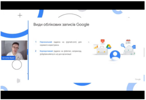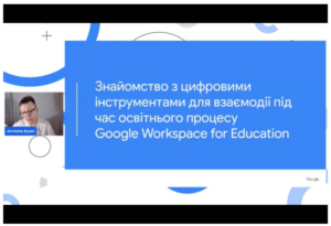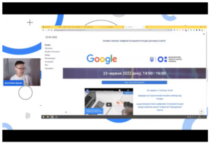 23 червня 2022 року викладачі кафедри іноземних мов взяли участь у практичному онлайн-семінарі від Google щодо використання цифрових інструментів для представників вищої та фахової передвищої освіти, ознайомились з головними перевагами та особливостями рішень Google for Education, основами Google Workspace for Education, практичними рекомендаціями щодо ефективного використання Google Академія, можливостями Розширеного пошуку Google та Google Сповіщень, Google Public Data, Dataset Search, Google Data Studio та Google Cloud Platform для наукової діяльності, цифровими інструментами Google Workspace for Education для оптимізації освітнього процесу онлайн та ін.
