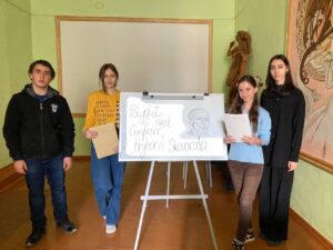 1 листопада 2022 року з нагоди 300-річчя від дня народження Григорія Савича Сковороди, видатного українського просвітителя-гуманіста, філософа, поета і педагога, викладач кафедри іноземних мов Пясецька О. О. зі студентами 1 курсу педагогічного факультету спеціальностей “Музичне мистецтво” та “Образотворче мистецтво” провели виховний захід-вікторину “Григорій Сковорода. Що ми знаємо про нього?”