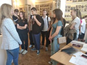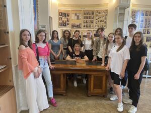 26 травня 2023 року в рамках проведення профорієнтаційної роботи старшим викладачем кафедри іноземних мов Городиською Оксаною Миколаївною було організовано екскурсію здобувачів середньої освіти Кам’янець-Подільського ліцею № 9 імені А. М. Трояна до музею університету. Завідувач музею Паур Ірина розповіла про основні етапи розвитку та становлення нашого університету, відомих представників університетської спільноти минулого та сьогодення. Учні 10-А класу жваво цікавилися історією університету, експонатами, які представлені в музеї, та їх походженням, спортивними досягненнями наших здобувачів та випускників. Також майбутні абітурієнти відвідали центр польської мови та культури, де зустрілися зі здобувачами першого (бакалаврського) рівня вищої освіти спеціальності «Середня освіта (Польська мова і зарубіжна література)». Студенти-полоністи розповіли про своє навчання в університеті та чому вони обрали спеціальність, пов’язану з польською мовою. Перед присутніми виступила кандидат філологічних наук, доцент кафедри слов′янської філології та загального мовознавства Білоусова Тетяна Павлівна. Пані Тетяна розповіла про свій власний шлях до філології та дисципліни, які вона викладає, ознайомила школярів зі спеціальностями, які можна здобути на факультеті іноземної філології, окреслила переваги та перспективи навчання в Кам’янець-Подільському національному університеті імені Івана Огієнка. Так відбулося перше знайомство школярів з нашим університетом, який, ми щиро сподіваємося, стане в майбутньому їхньою alma mater.