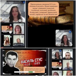 23 травня 2023 року відбулася гостьова лекція на тему: “Перекладацька діяльність Василя Стуса” для здобувачів 2 року навчання спеціальності “Германська філологія та перекладознаство: англійська мова та друга іноземна мова” Хмельницького національного університету. Модератор лекції Наталія Глушковецька, старший викладач кафедри іноземних мов факультету іноземної філології Кам’янець-Подільського національного університету імені Івана Огієнка.