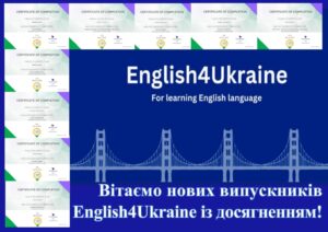 Ставайте користувачами English4Ukraine, продовжуйте навчатися, зростати і цілеспрямовано досягати нових висот, вдосконалюйте свої навички говоріння, аудіювання, письма, розширюйте свій словниковий запас. Потрібно пам’ятати, що англійська мова — це ключ, який відкриває безмежні перспективи! Нехай ваша подорож у світ англійської мови буде цікавою та продуктивною.