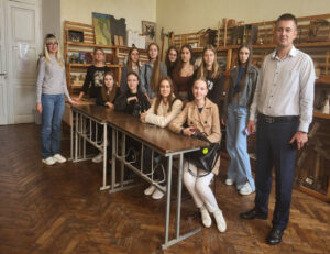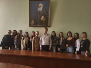 На екскурсію до історичного факультету завітали здобувачі освіти 11-А класу Кам’янець-Подільського ліцею № 9 ім. А. М. Трояна разом із викладачем кафедри іноземних мов Городиською Оксаною Миколаївною. В процесі спілкування з науково-педагогічними працівниками й магістрантами учні дізналися про історію створення й розвитку факультету, познайомилися з його структурними підрозділами: кафедрами, навчальними лабораторіями, бібліотекою, відділом рідкісних видань. Найбільший інтерес учнівської молоді викликали навчальна лабораторія “Дидактики історії”, яка вміщує виготовлені студентами наочні посібники, археологічна лабораторія з величезною кількістю знахідок, віднайдених за результатами археологічних експедицій та відділ рідкісних видань (особливо генеалогічні путівники, за якими учнівська молодь навіть спробувала долучитися до пошукової діяльності і знайти витоки своїх родоводів за вміщеними у них прізвищами). Також отримали інформацію про спеціальності факультету та особливості навчання за кожною з них.